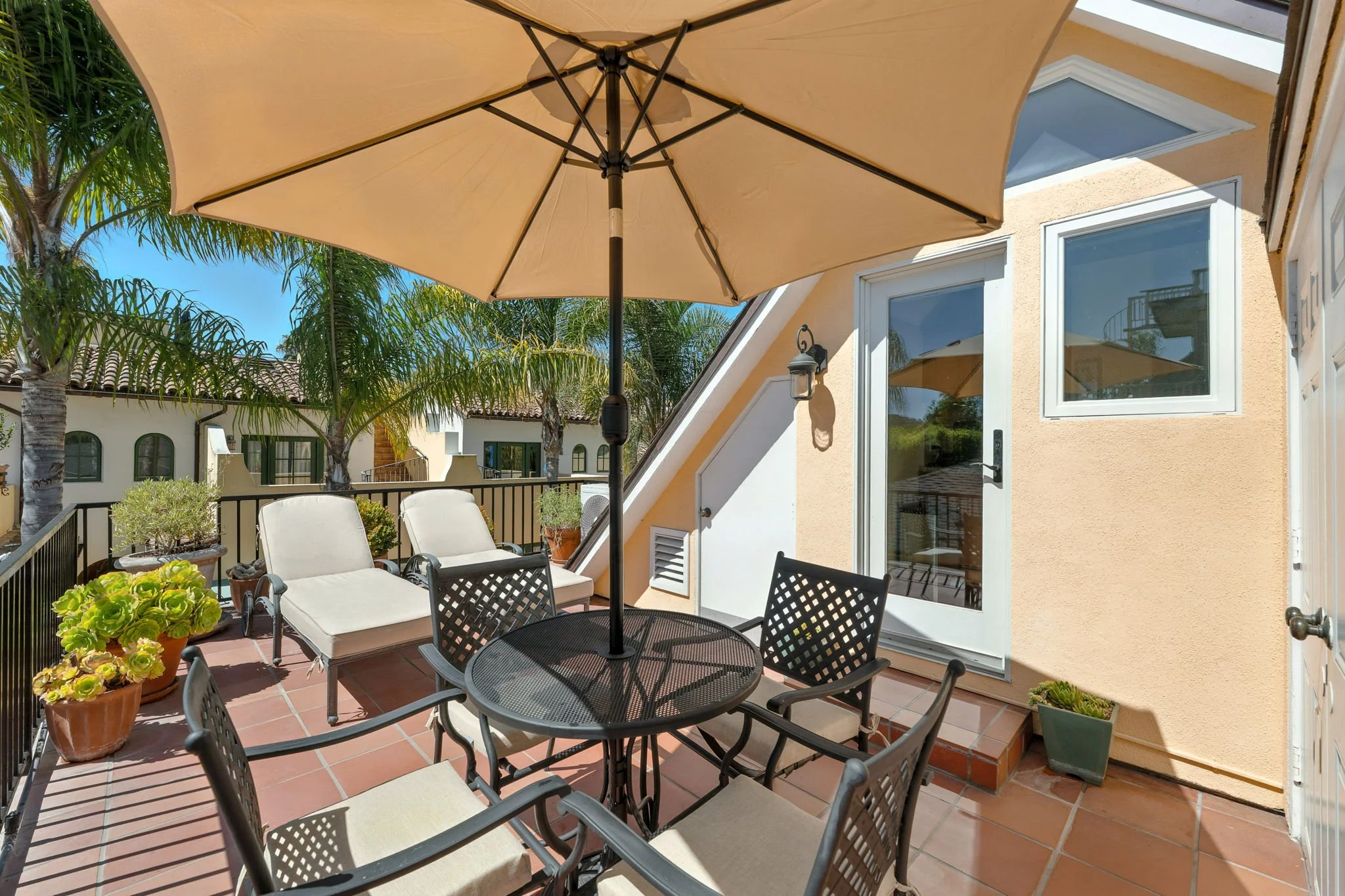 Private terrace with BBQ electric grill, dining space and lounge seating